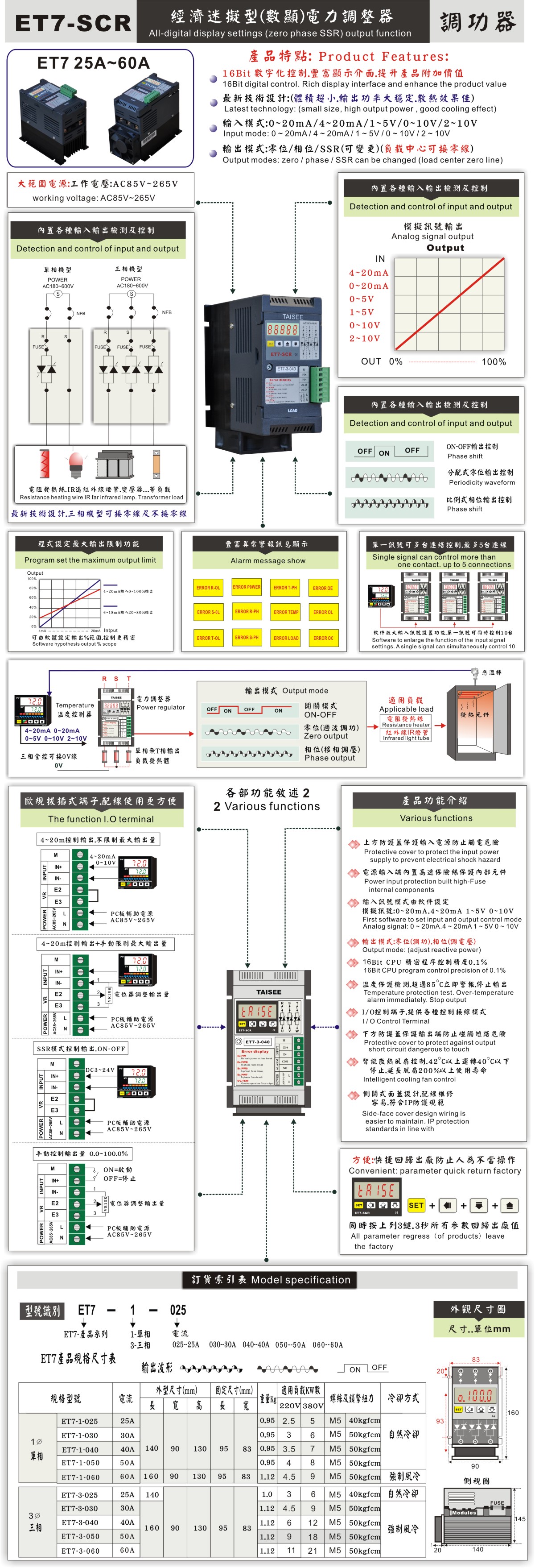 輸入模式:可變更/軟件方式變更 0~20mA/4~20mA/0~10V 輸出模式:可變更/軟件方式變更 三相.負(fù)載中心可接零線 零位.相位